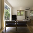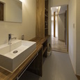 緑に囲まれた店舗併用住宅です。南側に山があり光が入りにくい敷地でしたので、どのように光を取り込むか、緑が多くある周りの景色をどのように切り取るかを大切に考えて設計しました。1階部分にある店舗はworks内の店舗・アトリエ等のカテゴリー、sawvih(そうび)で紹介しています。(photo:新 良太)