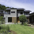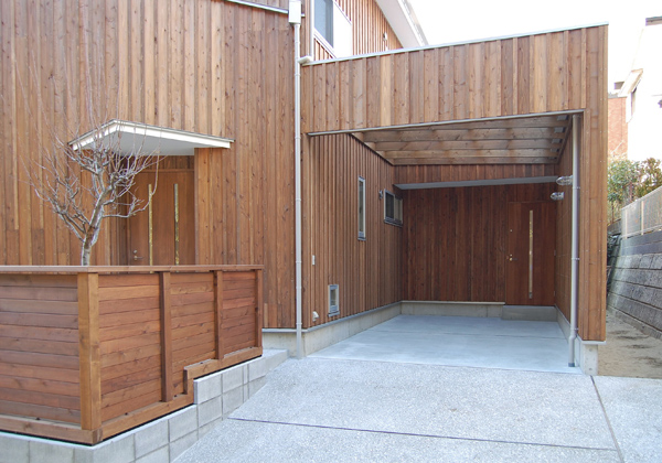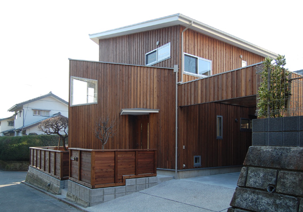 昔からある落ち着いた住宅街に建つ住宅です。緑が多く環境がいい地域なので、廻りとの調和を考え外壁の仕上げは木を貼っています。家の中の窓からも緑が楽しめるよう窓の位置を工夫しました。