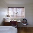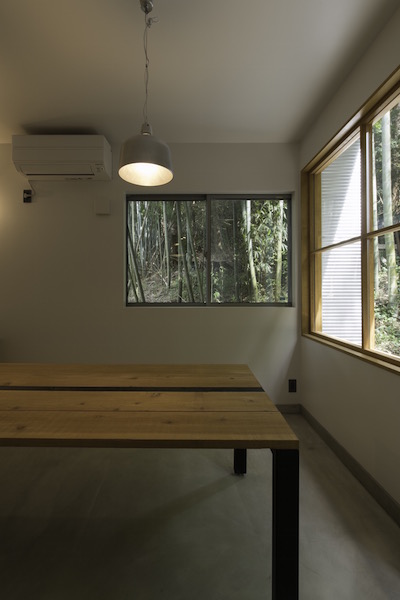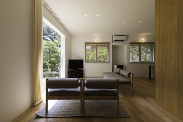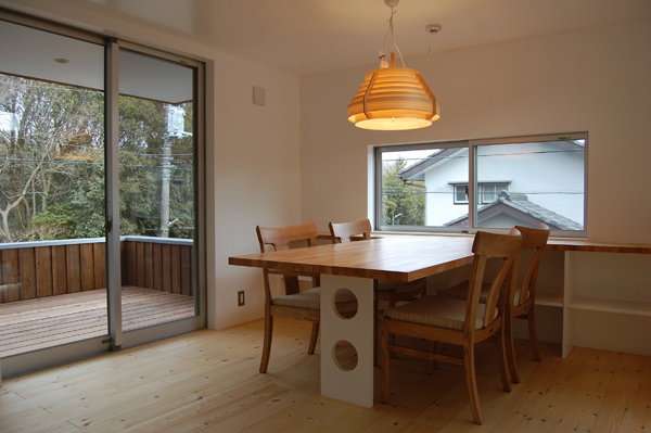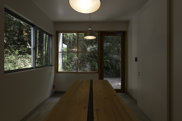 ご両親が住むとても綺麗に手入れをされた庭の一部に計画されたこの住宅は周りの景色をどのように切り取るかを考えて計画しました。今回はダイニングテーブル、ベット、置き家具もデザインさせていただきました。(photo:新 良太)
