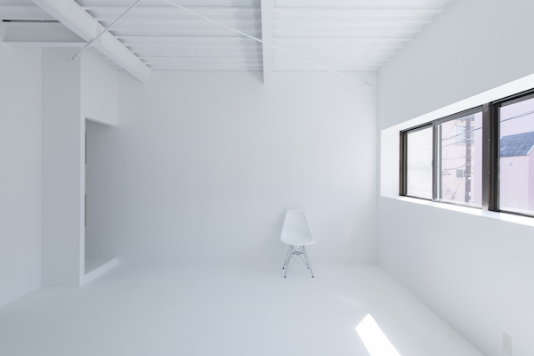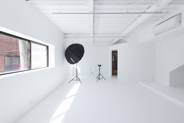 写真家の個人スタジオ。白夜のような真っ白い雰囲気の撮影スタジオと灯台小屋のようなザラっとした雰囲気の作業部屋。二つの全く違う世界観が共存しています。(photo:新 良太)