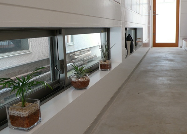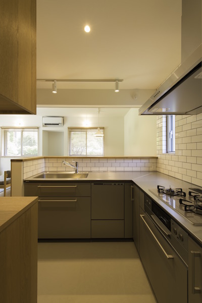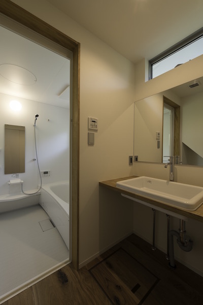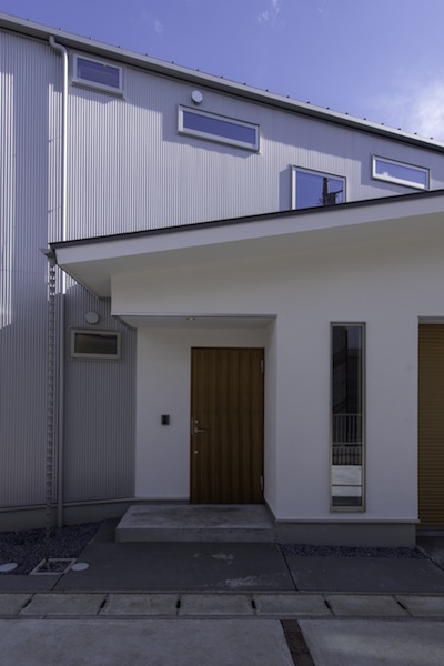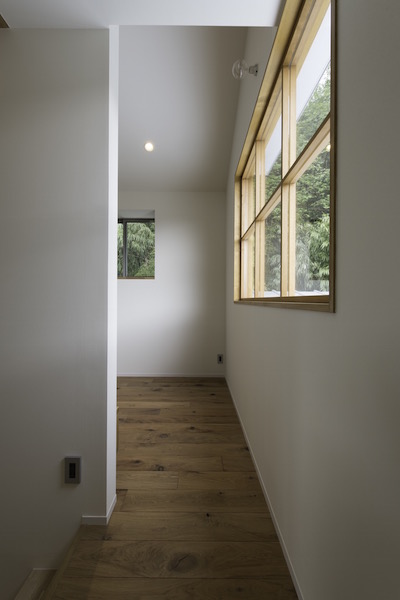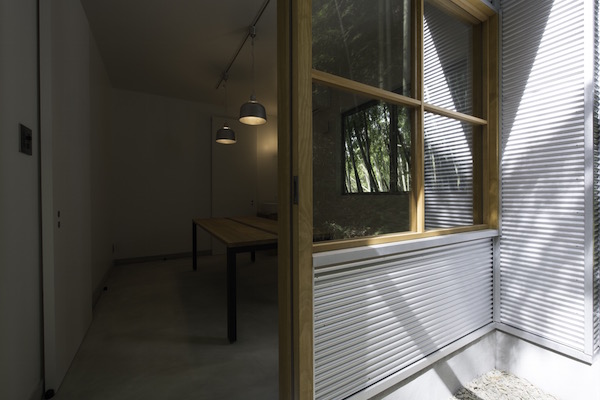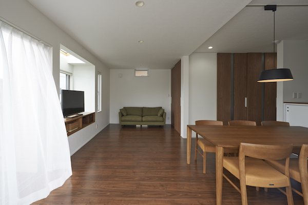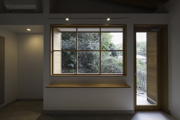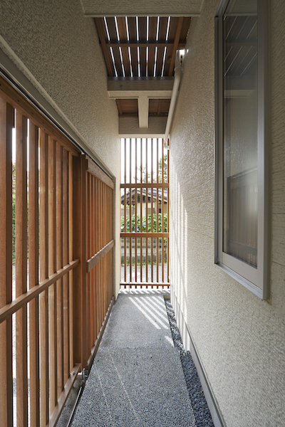 縦長の敷地の両端に道路が接していて、それぞれの道路からの出入り口を土間でつなげました。また、住宅密集地でもある中、窓の位置を工夫し、プライバシーを保ちながら風の抜ける窓、光をよぶ窓が内部空間を豊かにしています。