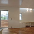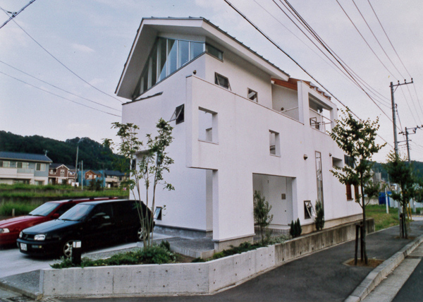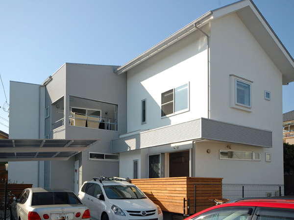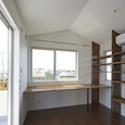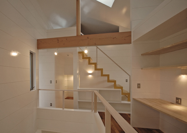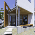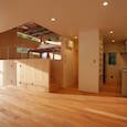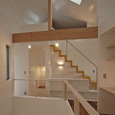 住宅地に建つ二世帯住宅です。親世代を1階部分に、子世帯を2階部分にし、孫の部屋を中2階にすることで、孫の部屋を介して緩やかなコミュニケーションが取れるよう計画しました。