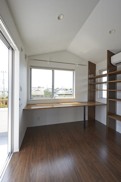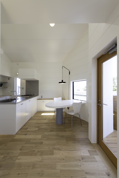 1階部分には薪ストーブのある応接間と個室、2階部分にはLDKと家族全員で使うワークスペースがあります。海の側に建つ家らしく、開放的でおおらかな空間となっています。