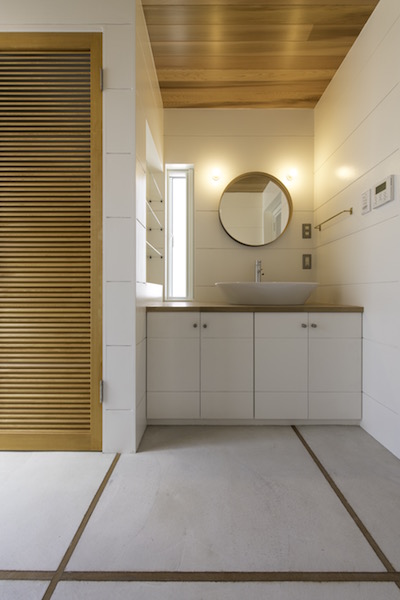 ビルトインガレージ、ペット室、オープンなキッチンに富士山を望むデッキテラス。住む人の夢がたくさん詰まった家となりました。ダイニングを通らずにキッチンからパントリー、バックヤード、洗濯室に繋がる動線により家事を効率的する事が出来ます。(photo:新 良太)