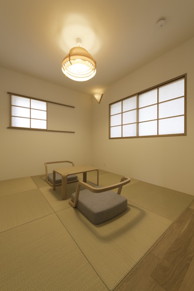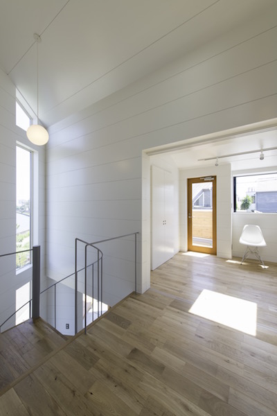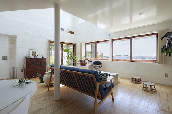 窓からは鎌倉の海と江ノ電、長谷寺が見えるロケーション。夏は3階のデッキから花火も見えます。とにかく多くの風と光が入る空間となりました。将来は留学生を受け入れたいというクライアントの要望から、和室を用意してあります。(photo:新 良太)