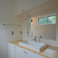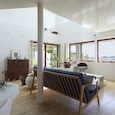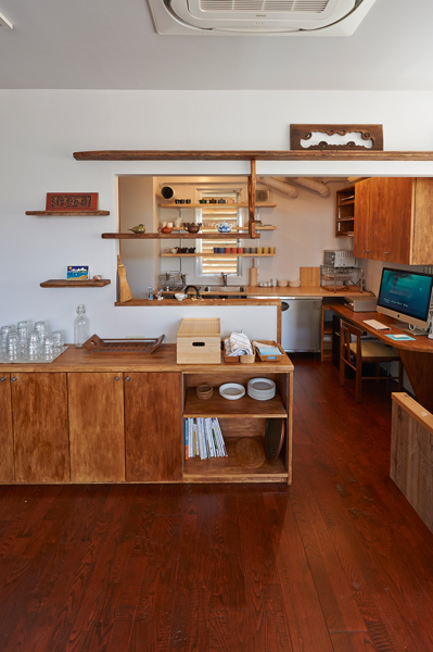 真鶴半島にある築40年近くになる民宿を改修し、住居兼アトリエとした計画。手仕事のオリジナル制作をするアトリエ兼ショールームは見晴らしのいい2階へ。住居部分は落ち着いた1階へとゾーン分けをしました。壁の一部を撤去し、部屋と部屋を繋げる等、プランに回遊性を持たせました。