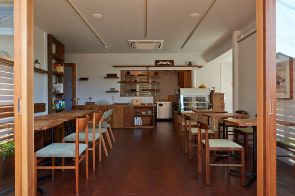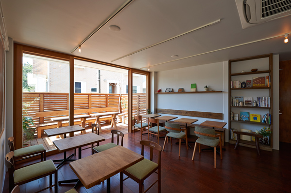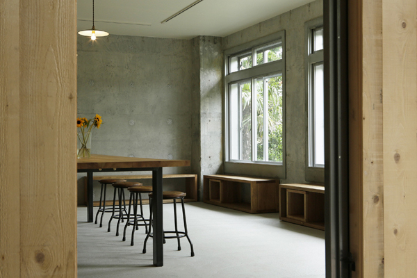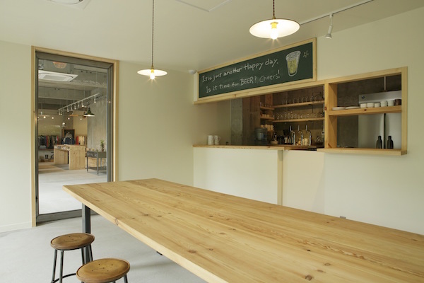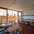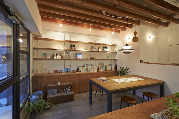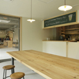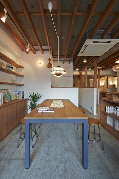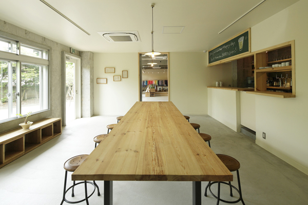 sunshine+cloudに併設されているカフェです。ここを訪れる人たちが、この場所を通して自然とコミュニケーションが生まれるように、という思いから客席の真ん中には大きなテーブルが置いてあります。(photo:古谷 昭洋)