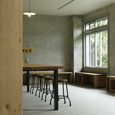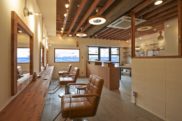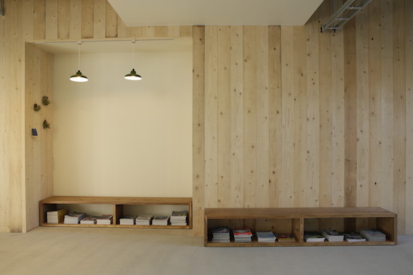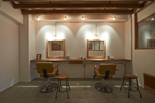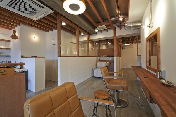 東京都文京区千駄木のよみせ通りにある美容室です。築40年以上経ったビルの1階にあり、古くから有る建物と違和感のないファサードになっています。コンクリート躯体に、木材や白い壁を配した清潔感のある店内と、友人の家のダイニングにいるような、ゆったりした心持ちになれる待合が特徴です。(photo:新 良太)