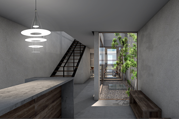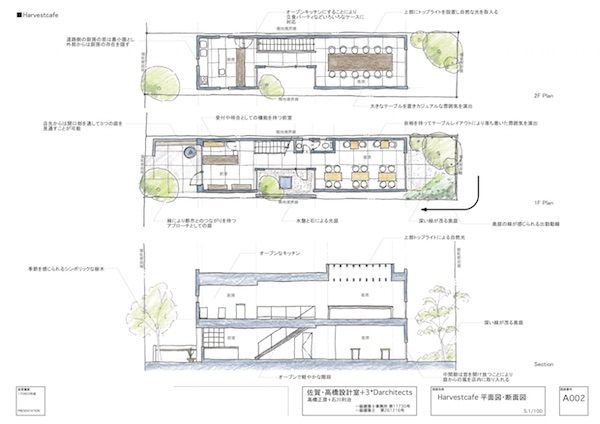 四谷駅からすぐの新宿通り沿いに計画されたカフェ計画です。細長く小さな敷地にカフェを、そこから150mほどの敷地にテイクアウトのコーヒースタンドを計画しました。