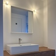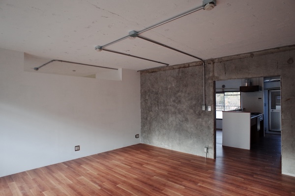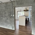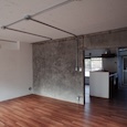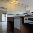 築50年を超える団地の最上階住戸のリノベーション。既存の仕上げを剥がし、コンクリートの素地と白い塗装、露出した設備によって空間を整えました。最小限の操作にとどめることで、団地の中に浮かぶような余白と、これからの暮らしを受け止める場をつくっています。